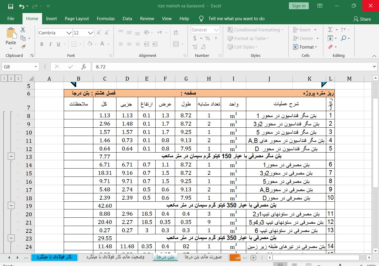 پروژه متره و برآورد ساختمان مسکونی